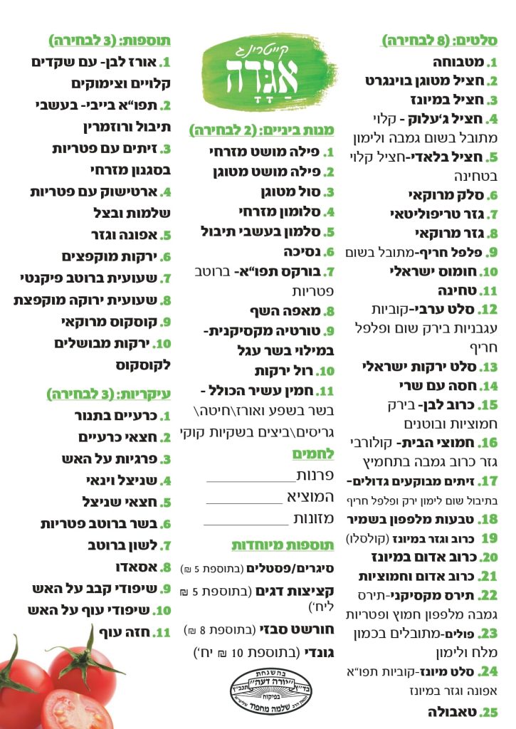 אגדה הוא קייטרינג כשר למהדרין בהשגחת הבד"ץ הרב מחפוד ואנחנו מספקים שירותי קייטרינג לארועים, שבת חתן, חינות, בריתות, חתונות, אירוסין, סעודות מצווה לאבלים ועוד.
